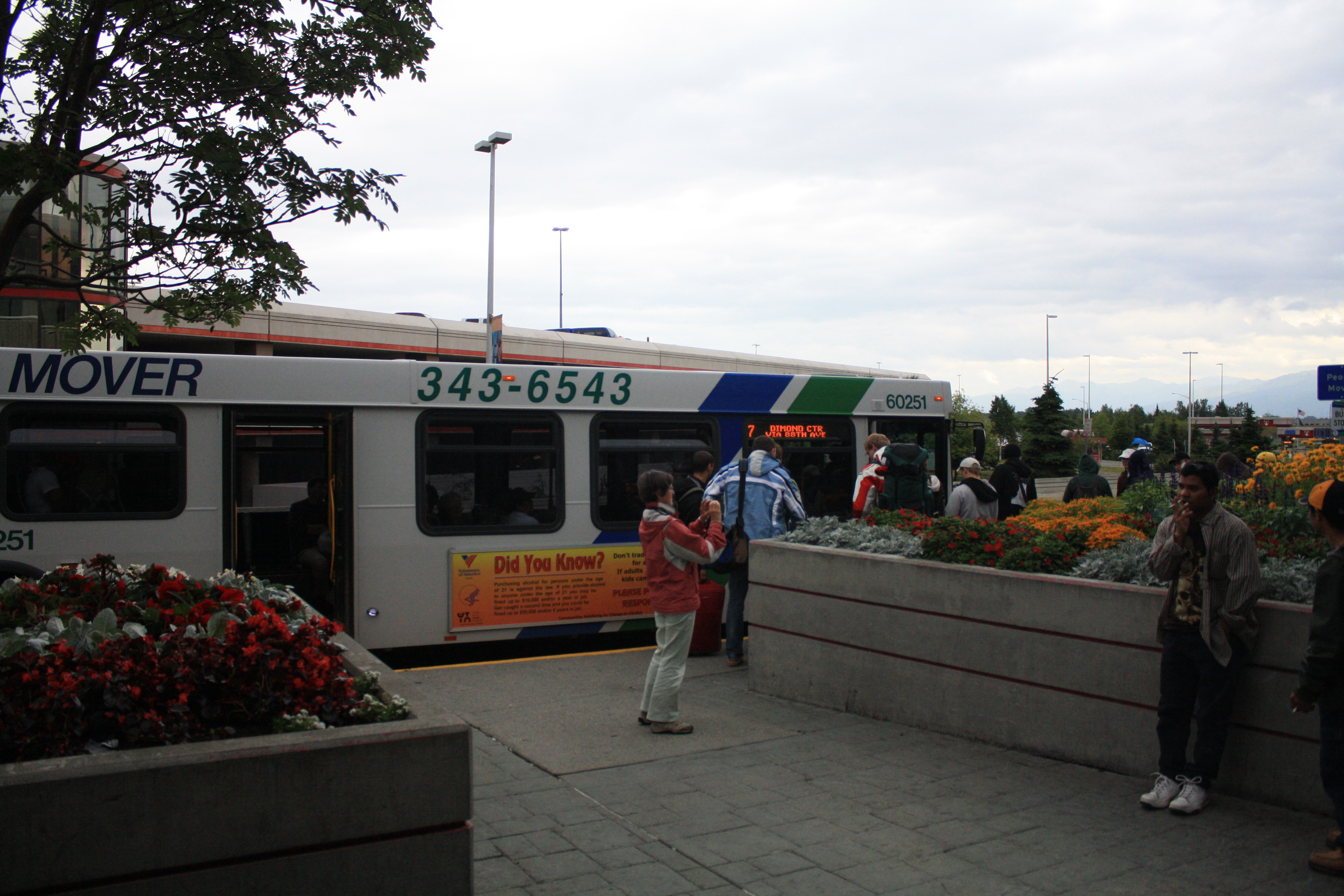 As the goal was to use public transportation in Anchorage to avoid a ~$25+ cab fare to downtown, we needed to get there to make one of the last two buses, 9:15 or 10:15.  We were scheduled to land by 8:40 so it seemed like we might get lucky and be at the B&B and in bed by 10:30.  Take note that Alaska is three hours behind CST, so that would have been 1:30 am Minnesota time.
