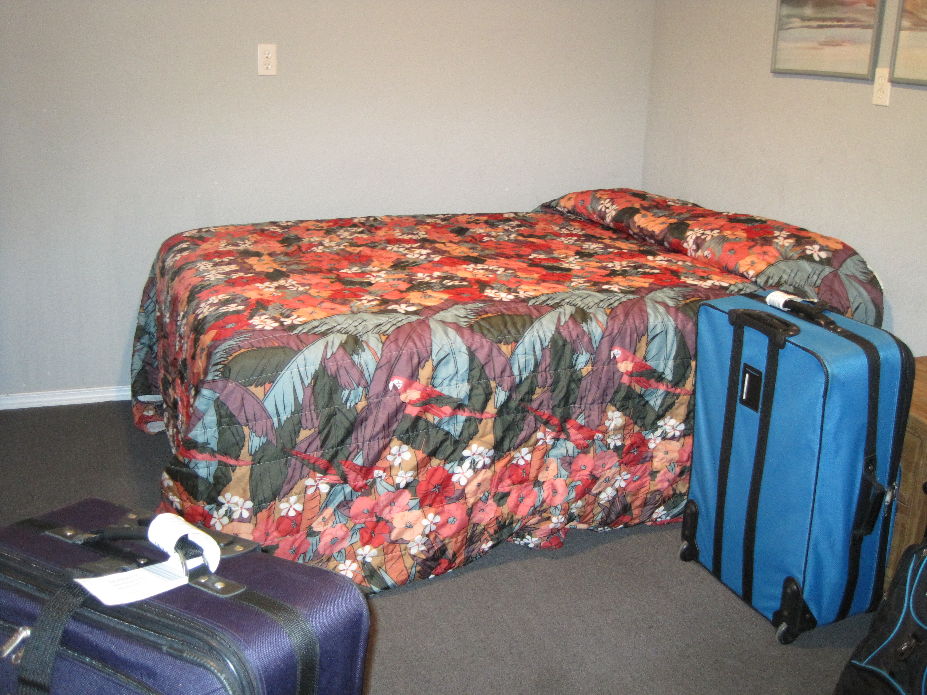 Turns out we boarded about half an hour late and then had to wait another twenty or so minutes to take off. This put us squarely in line to maybe make the 10:15 bus. The pilots must have burned some fuel because they managed to make a five hour or so flight half an hour shorter as we were on the ground by nine and to the luggage pickup area in time to see the 9:15 bus come and go. No problem, right, we’d get our luggage shortly and then leave.