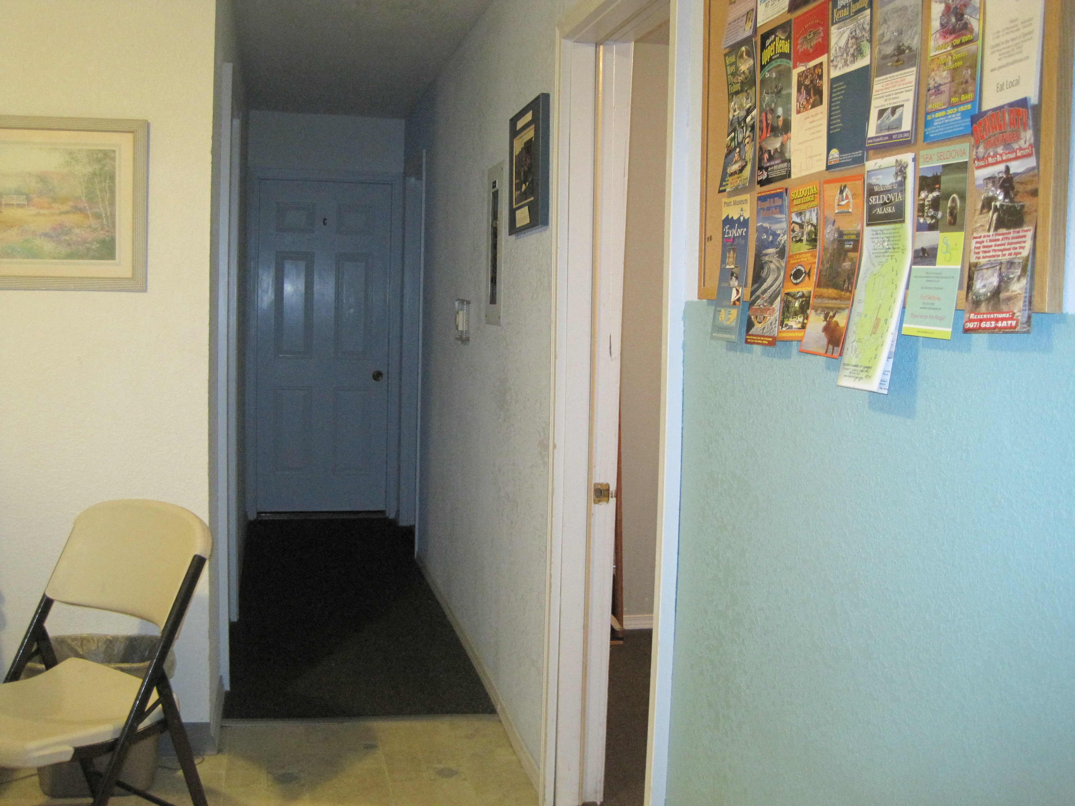 Anyway, the fun continued the next morning when we grabbed some breakfast from the shared main room and retreated, not wanting to use the shower despite its apparent cleanliness. We had to wait until ~10 am for our rental car and we couldn’t sleep in the smoke choked room past seven we went for a walk. An interesting site in Alaska are the little coffee huts on many corners. We wimped out and went and sat at the nice starbucks in the local Barnes & Noble store. Around nine we headed back to make sure we were packed and ready to go. That’s when the domestic dispute started upstairs. F-bombs and heavy thumping proceeded. I called Enterprise to see if they would pick us up early, nope. We endured this for a while and finally just stood outside in the rare sun and nice temps. Finally we checked out and were picked up by a friendly Enterprise lady.